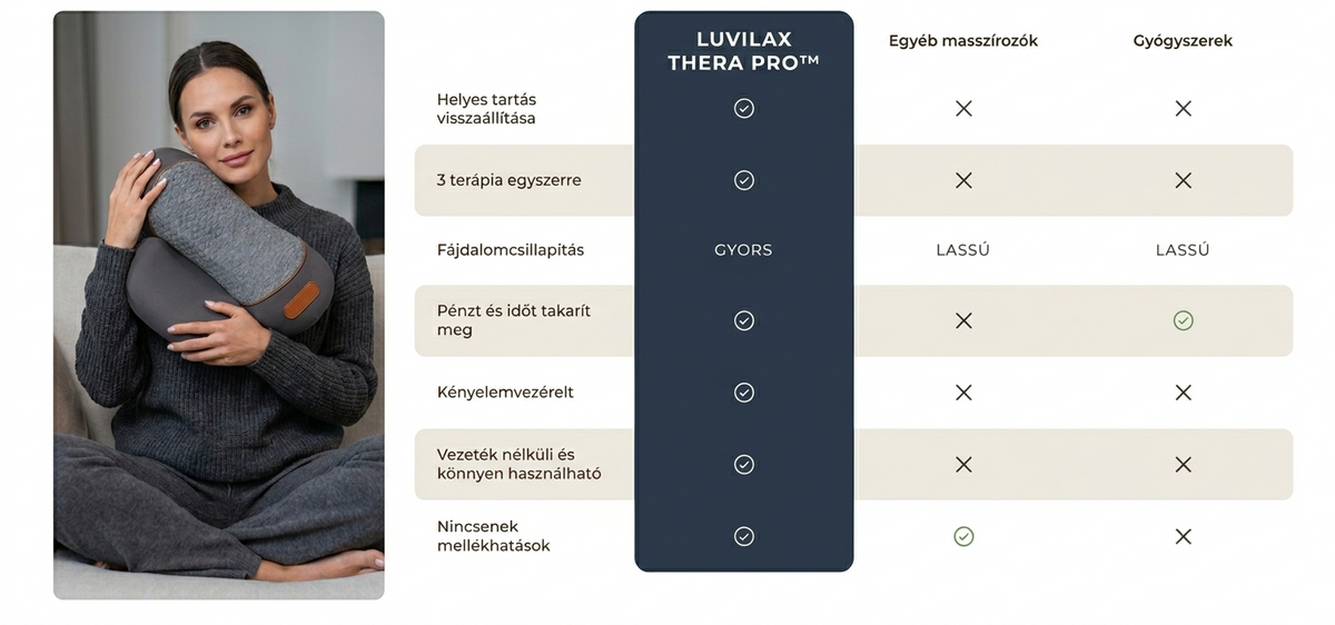 A Luvilax párna akár már napok, nem hónapok alatt megtérül. Terapeuták által ajánlott és klinikailag alátámasztott, gyengéd enyhülést nyújt erős nyomás vagy kockázatos beállítások nélkül. Használja minden este. Nincs időbeosztás. Nincs utazás. Nincsenek ismétlődő díjak. Csak biztonságos, következetes nyakápolás, amikor csak szüksége van rá.